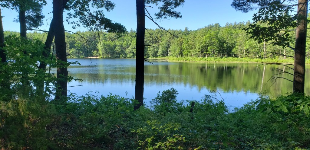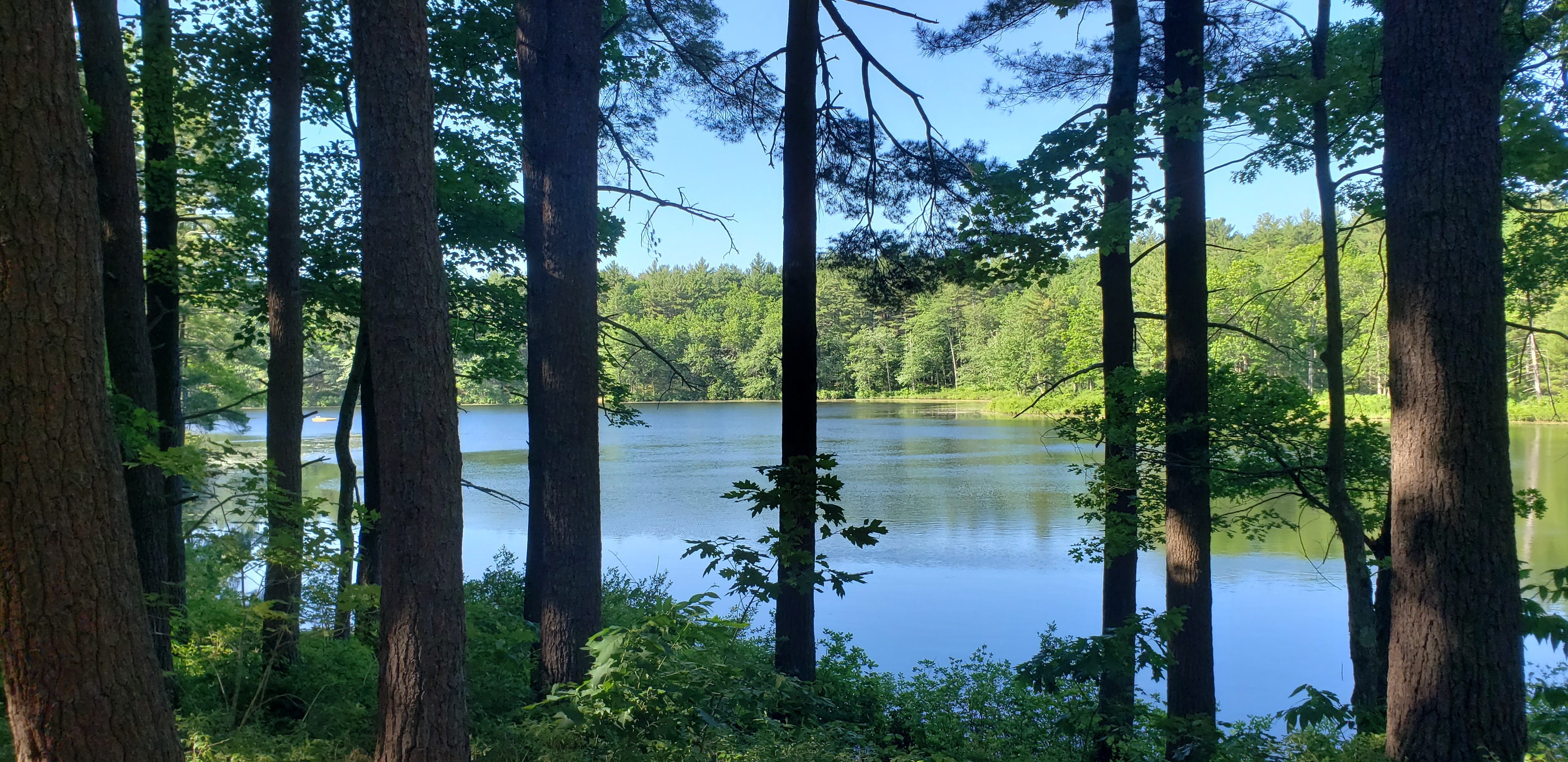 Burges Pond from the north side trail looking out to the beach on the girls’ side.