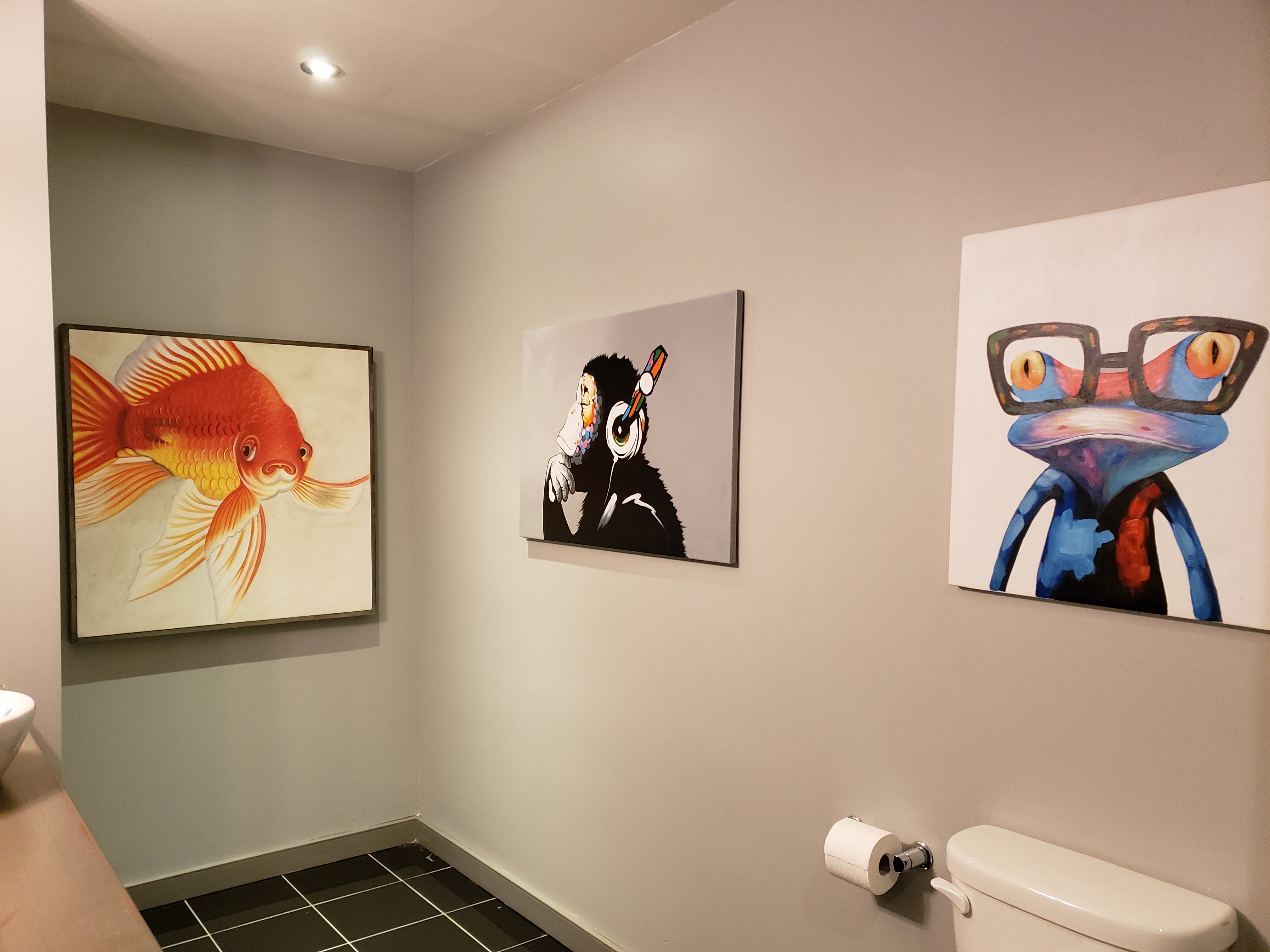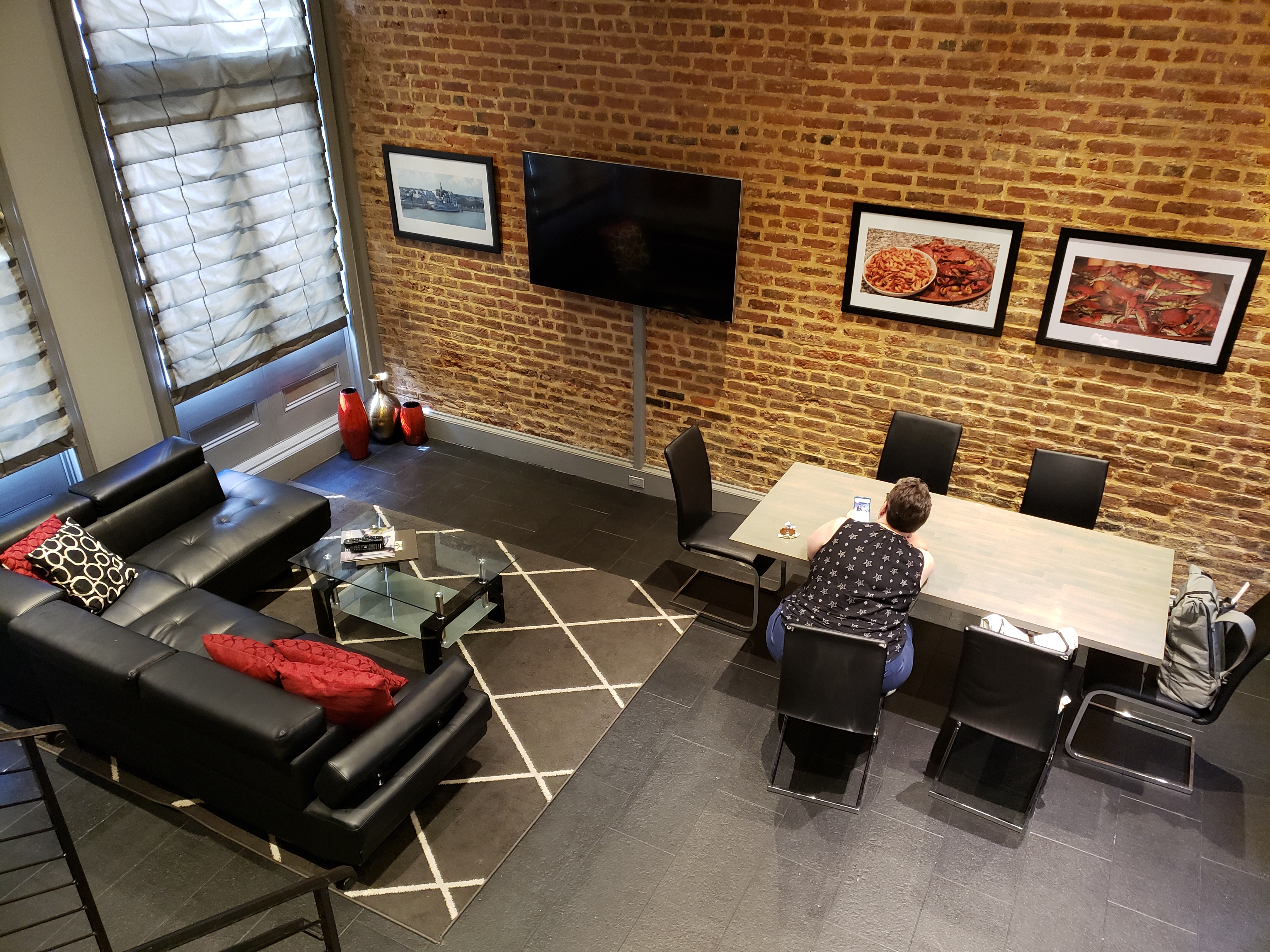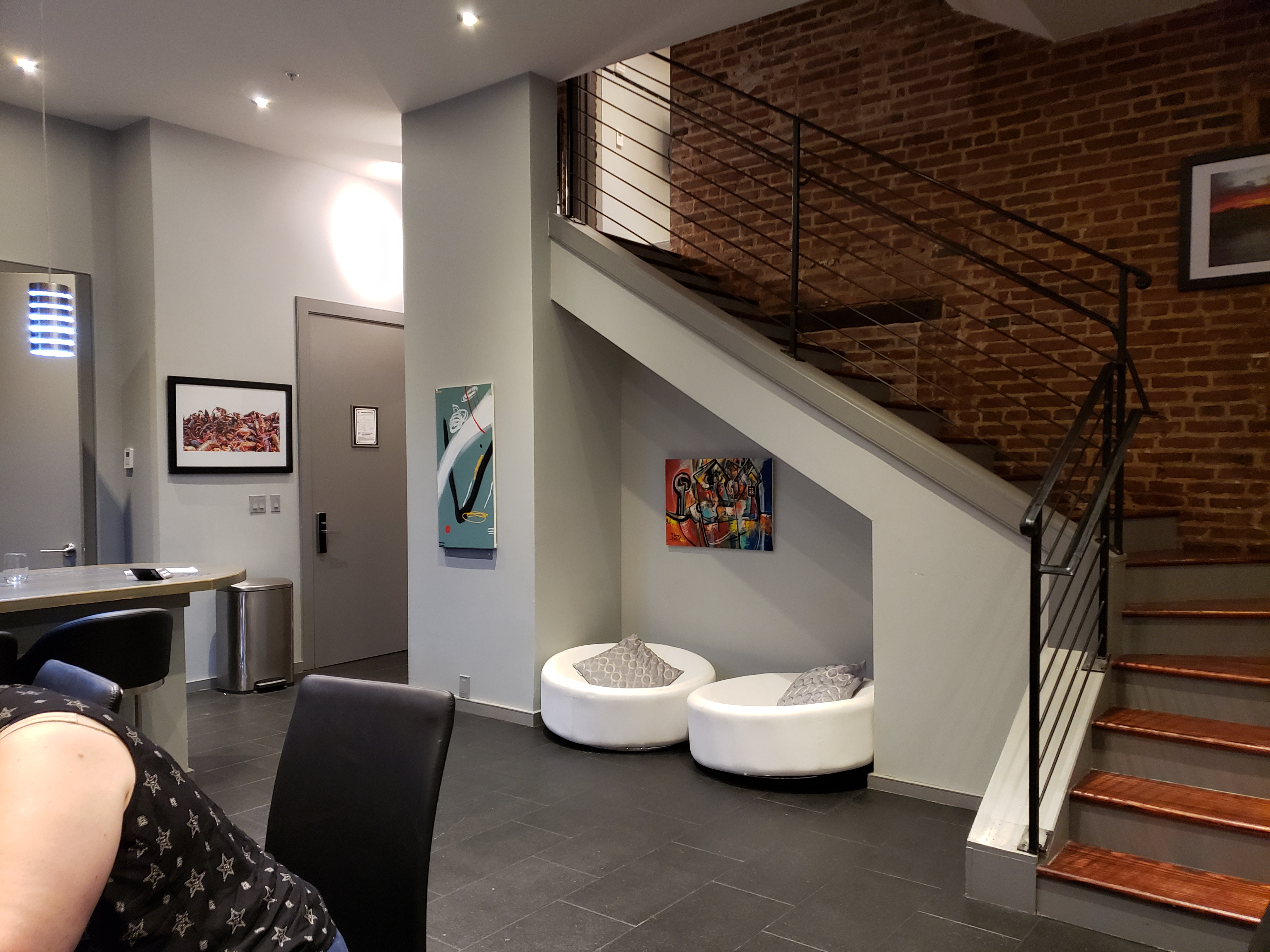 This time we were traveling with our friends Sandy and Grant, and Grant’s mom. We decided a suite was again the best option. But this time we needed one that was larger, and guaranteed not to be destroyed due to a winning football game. We reserved a 3-bedroom suite at The Natchez. Let me tell you, if you are looking for an incredible suite, with a big beautiful kitchen, comfortable rooms, and just a short walk to the craziness of Bourbon Street, but far enough away to get some peace and quiet, book a suite at this place!! It is expensive, and you have to make a huge deposit (like 50% of your entire stay’s bill), but it is amazing. And it’s within walking distance of some fantastic restaurants, including the Ruby Slipper in the Central Business District (CBD), currently closed due to COVID-19, and Mother’s which is the kind of place where you should order the specials of the day because they sell out FAST! Also, don’t miss the hot tubs out on the roof at the Natchez. We discovered them one morning over coffee! Right next to a very busy street, but plantings and the roofline itself maintain a private, hidden feel. Some photos below will give you an idea of our suite. Belive it or not, that top left picture is from our bathroom, original paintings we loved hanging in our bathroom! Every room had original artwork of multiple styles. We loved it.