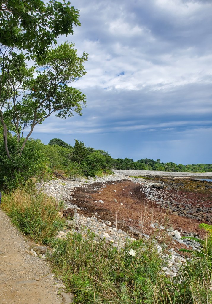 Today’s hike was a revisit to one of the hikes featured in my blog written in 2009/2010, 52b452.blogspot.com. As I’ve mentioned before, back then we were usually hiking off season, and in the case of Odiorne Point State Park, we’d combined it with two other parks that day! Busy women we were! It’s been over 10 years since we were there, but if anything the park has gotten better with time! Today was a cloudy day, but definitely warmer than that visit long ago. I tried to keep this post fairly close to what I’d written back then, but have provided updates where needed. And as I type, there is Blueberry Peach Crumble bubbling away in the oven! Yummmm.
