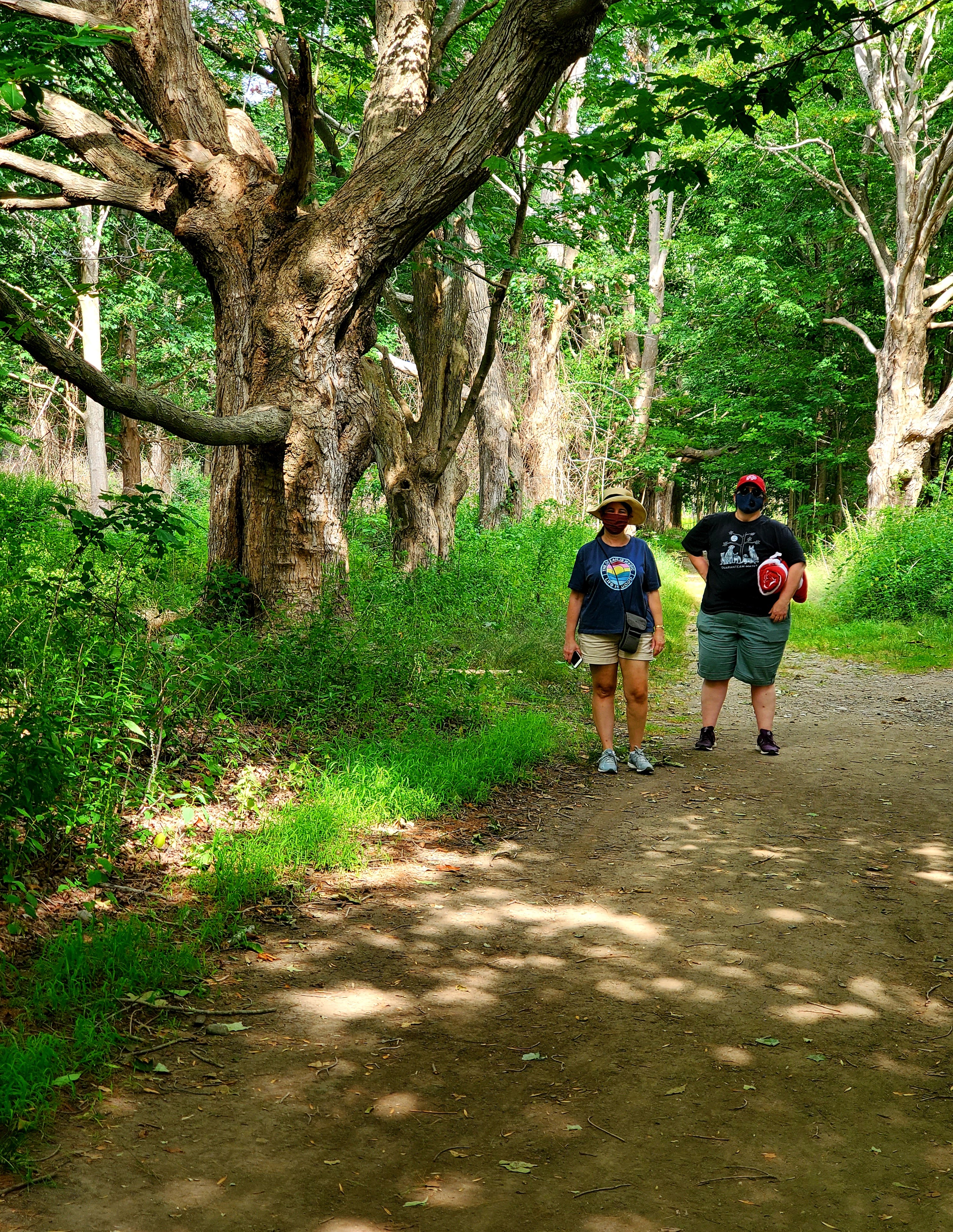This is a very strange park to walk through the offseason. Lots of things to explore and just past the height of foliage season we were struck by how golden and green everything seemed. It would be a great place for kids to run around in. The park itself is flat, but the trails aren’t stroller or walker-friendly, and once you’re in the woods, you need a good sense of direction to know which direction to walk in. But we do believe that all paths lead back to the parking lot (unless you find yourself walking UNDER the road, in which case you’re on your own!).