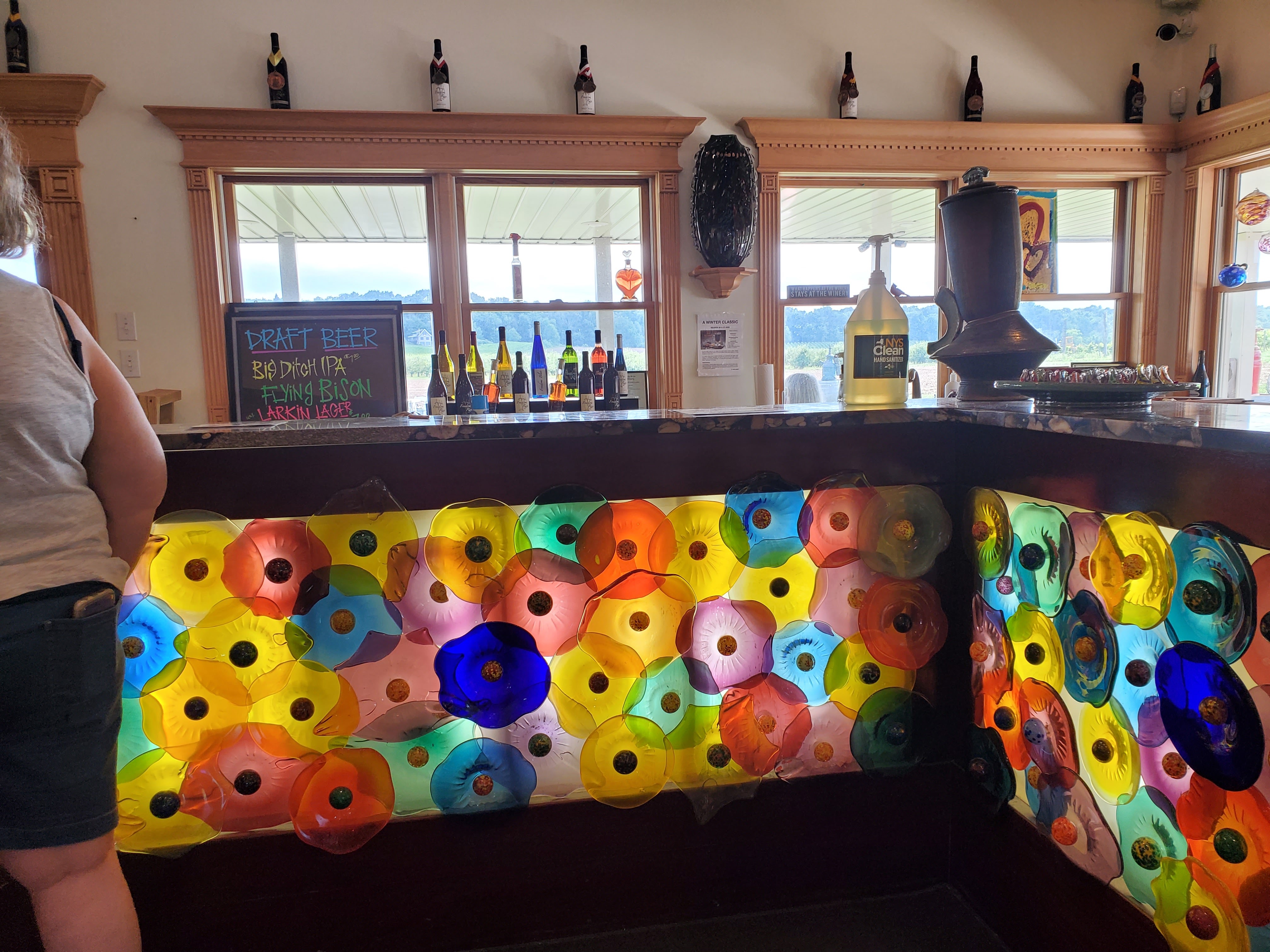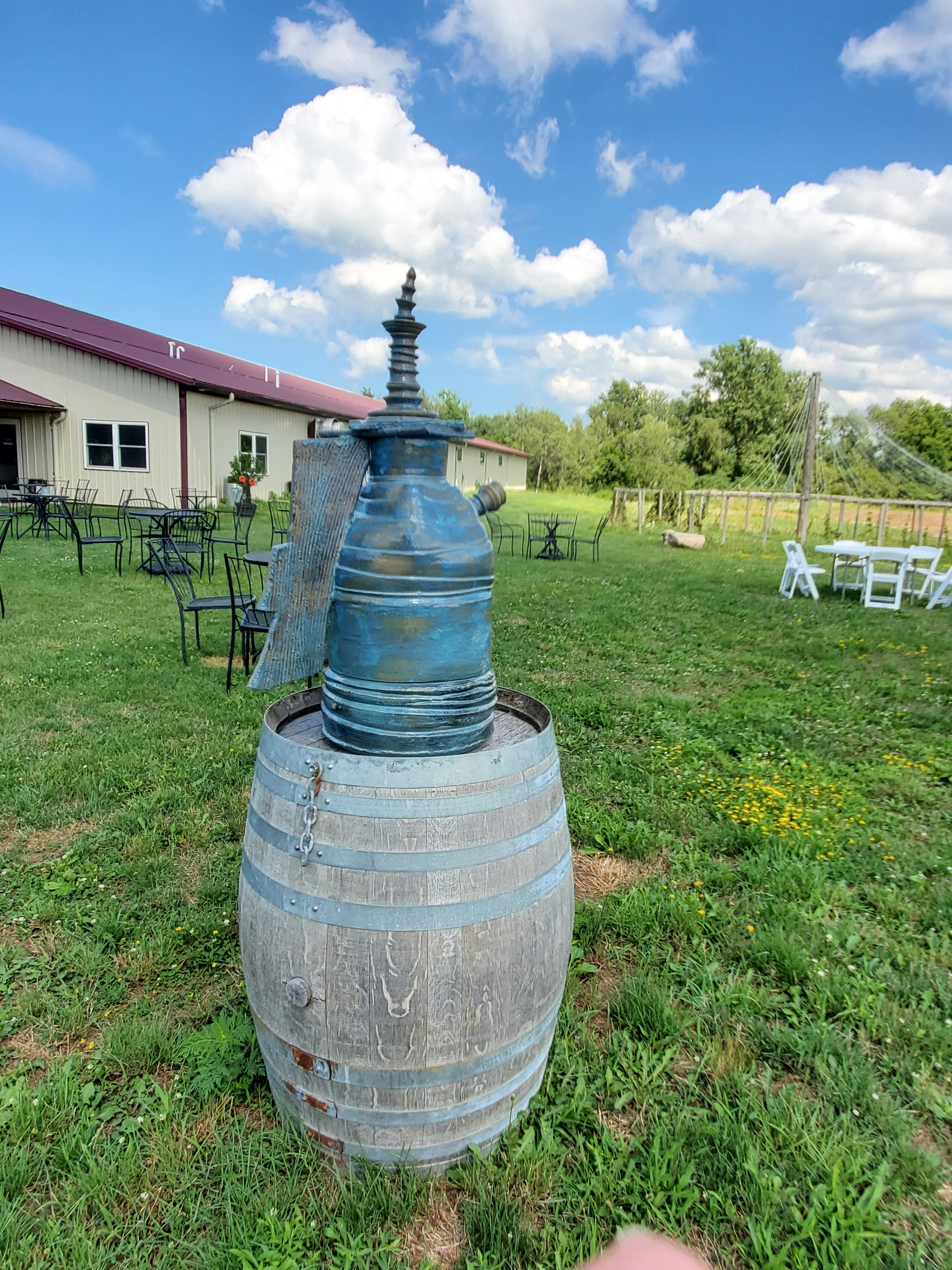 Even though we were running to the end of our afternoon and didn’t really have time to taste any wine, we decided to go ahead and purchase a few bottles. I’ve since tasted the Freedom Blue white table wine we bought and it is a definite YES! Even from Beth who usually finds non-sweet wines something she doesn’t like. There’s enough body and sweetness for her to enjoy it. And when we saw the slanted bottle of Apple Wine we couldn’t resist.
