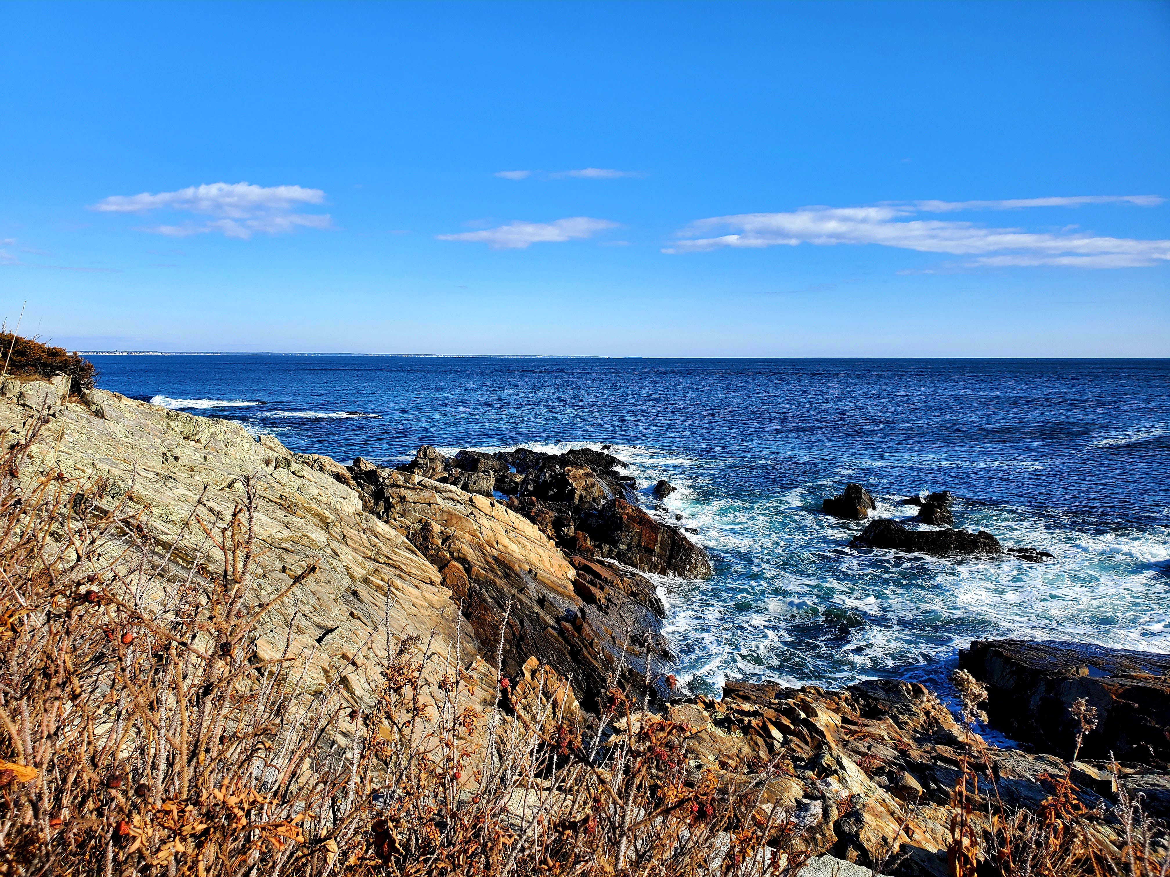 Marginal Way is a very popular place. For one, it’s beautiful. You’ll walk along the rocks looking out over Oarweed Cove, from Barnacle Billy’s (where there is a small parking lot, free at this time of year), passing Israels Head (a great diving location), Little Beach, the Beachmere Inn (which on this day had outdoor seating and gas firepits to keep people warm during brunch, ending at the Sparhawk Oceanfront Resort. But it’s also one of the best places in a crowded little village, to see uninterrupted views of the ocean. On the day we hiked, it was cold, but a gorgeous day. Definitely one perfect for taking photos of our favorite place to be.