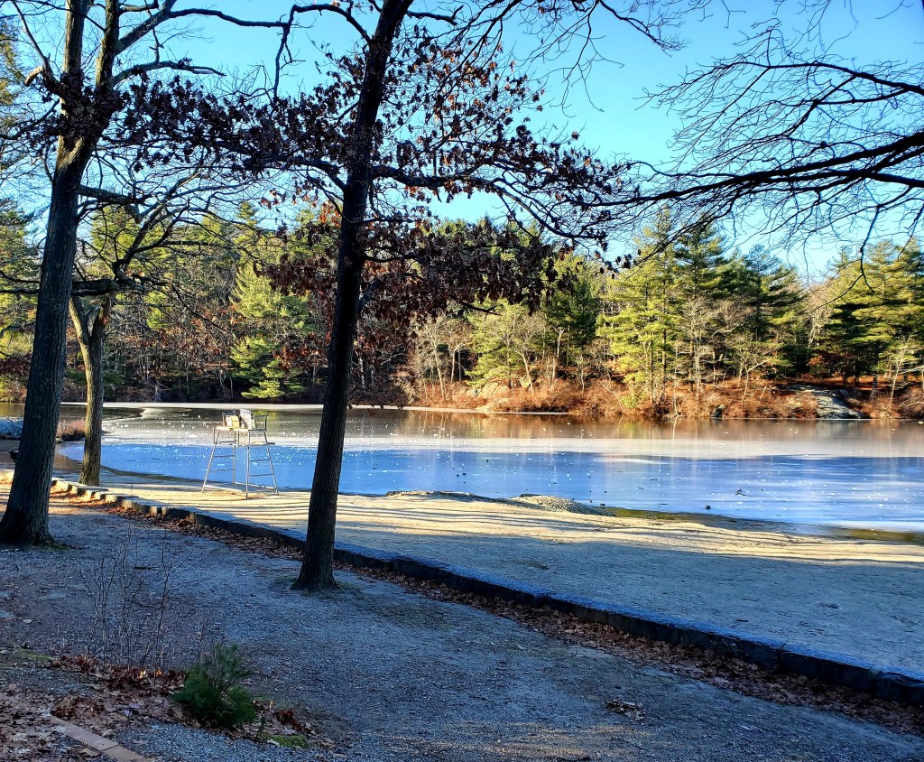 And of course you have to see the pond from my memories. But on our visit it was frozen and there was no fountain. It was still beautiful, and is a great place to visit in the summer to cool off and enjoy “the great outdoors” very convenient to Saugus, Lynn, Melrose, Malden, Medford, Wakefield. It’s obviously a very big park with numerous entrances.